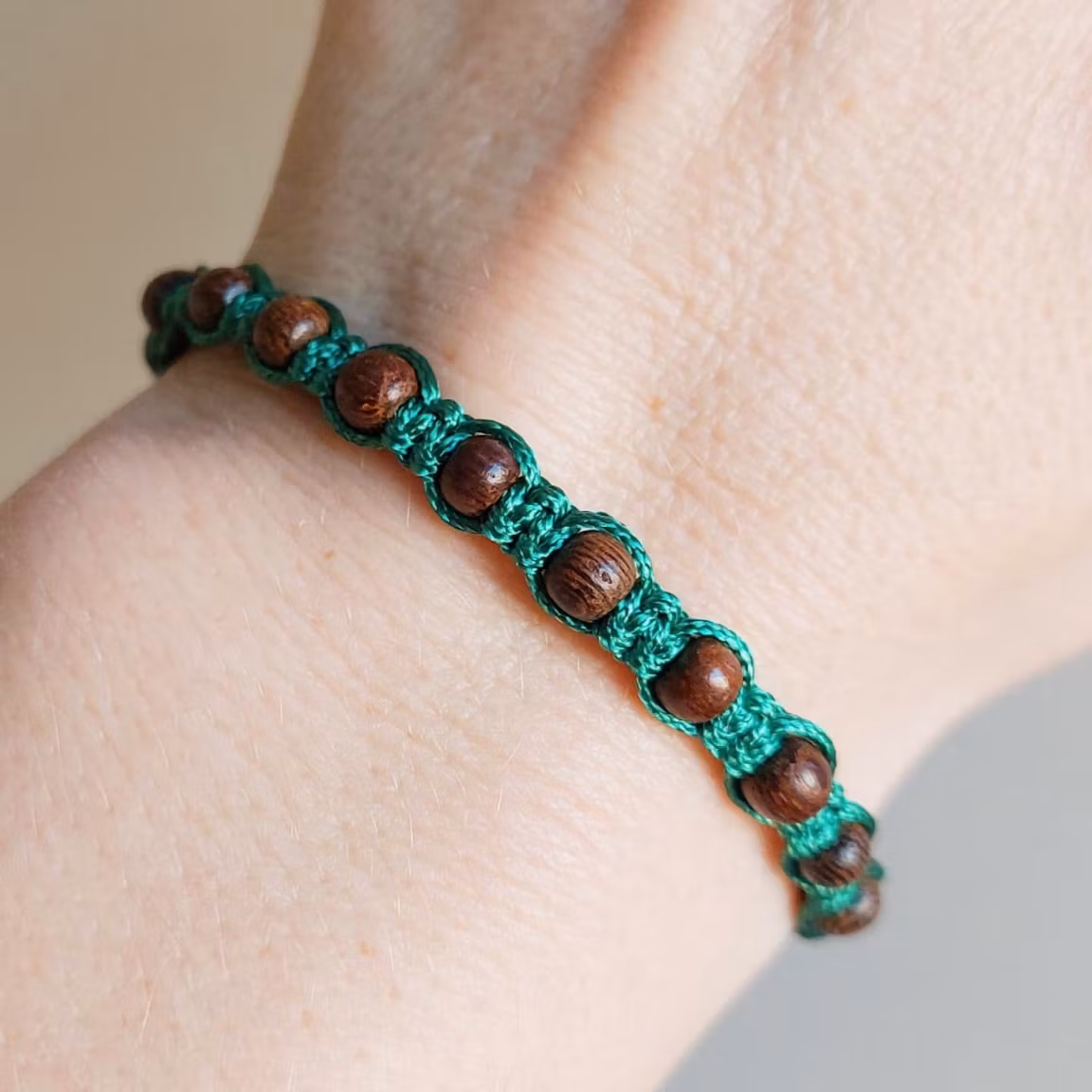 Hem › Produkter › Makramé-armband › Makraméarmband med knapp | Trä Makraméarmband med knapp | Trä Produkten är tyvärr slut i lager. :( Makraméarmband av polyestertråd med pärlor och knapp av trä.Storlek M.